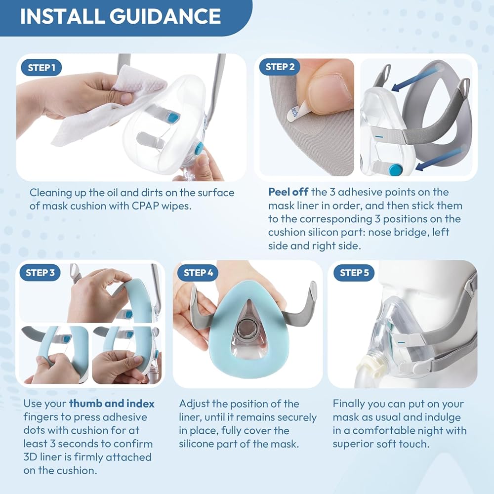 CPAP Mask Liners, 3D Mask Cushion Cover, Reduce Air Leakage, Compatible w/ ResMed F20/F10, F&P Simplus & Vitera, Philips Full Face Masks CPAP Supplies Accessories, Cushions NOT Included