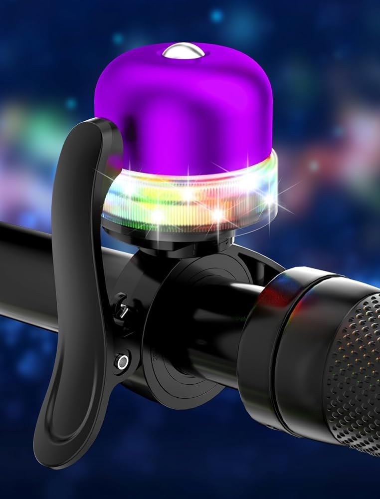 【Mesmerizing RGB Illumination】This bicycle bell for kids have 3 Rgb lighting modes: constant lighting, breathing lighting and marquee lighting. (Breathe and marquee lights flash for 5s on bell tap.)