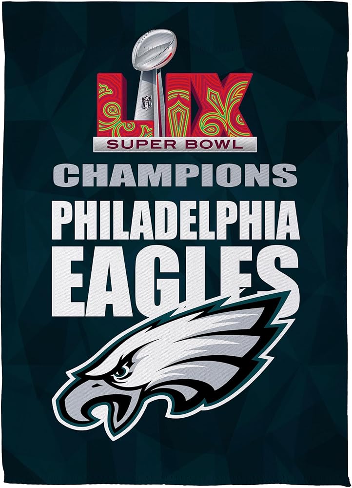 Team Sports America NFL Philadelphia Eagles Superbowl 59 Championship Double Sided Flag, Officially Licensed Sports Flags For Outside Decoration, Gift for Football Fans (12"x18")
