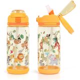 Kid-Friendly and Durable Design: Designed with safe PP plastic material, this water bottle is break-resistant and lightweight. It's perfect for keeping kids hydrated during school, sports, daycare,travel or on-the-go adventures.Also the easy-to-carry handle adds more convenience for kids.