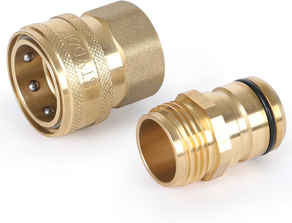 STYDDI 3/4-inch Full Flow Super Heavy Duty Hose Quick Connect Fittings, Lead-free Brass Full Port Garden Hose Quick Connector Coupler, 3/4" GHT High-Volume Hose Quick Release Adapter Set