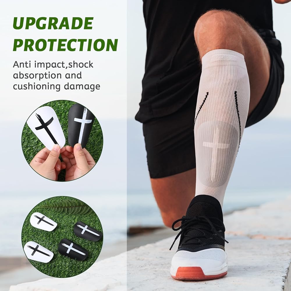 【Durable Design】The shin pads feature a tough PP front and cushioned EVA back for optimal shock absorption.The shin guard's high elasticity and anti-fatigue properties ensure they stay intact on impact,giving you the confidence to take on every game