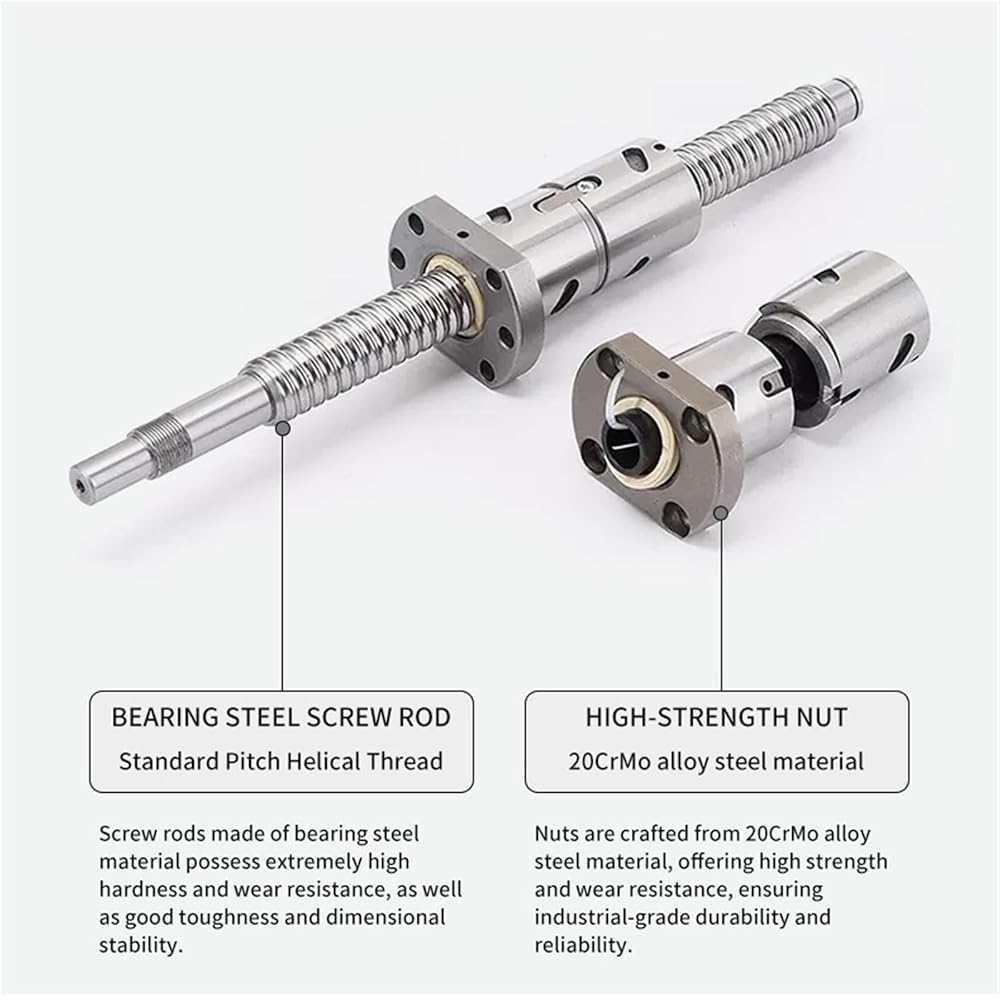 High-strength nuts have high strength and wear resistance, ensuring industrial-grade durability and reliability. Bearing steel screw, standard pitch helical thread, screw made of bearing steel material has extremely high hardness and wear resistance, as well as good toughness and dimensional stability. Smooth and quiet operation, lubrication at both ends and noise reduction.