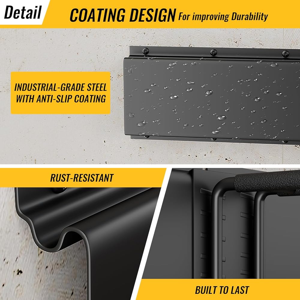 【Garage Wall Storage Solution – Space Saving Organizer】Maximize your vertical space with this wall-mounted holder. Organize your garage tools and lawn equipment efficiently and keep your workspace clutter-free.