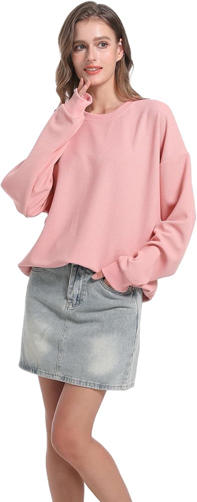 Design:Women Waffle Sweatshirts,Drop shoulder collar, Slight stretch, Long sleeve tops,Fall outfits for women,Fashion and casual style,Soft, Comfortable, Skin-friendly,Standard size, a sweatshirt that goes with everything