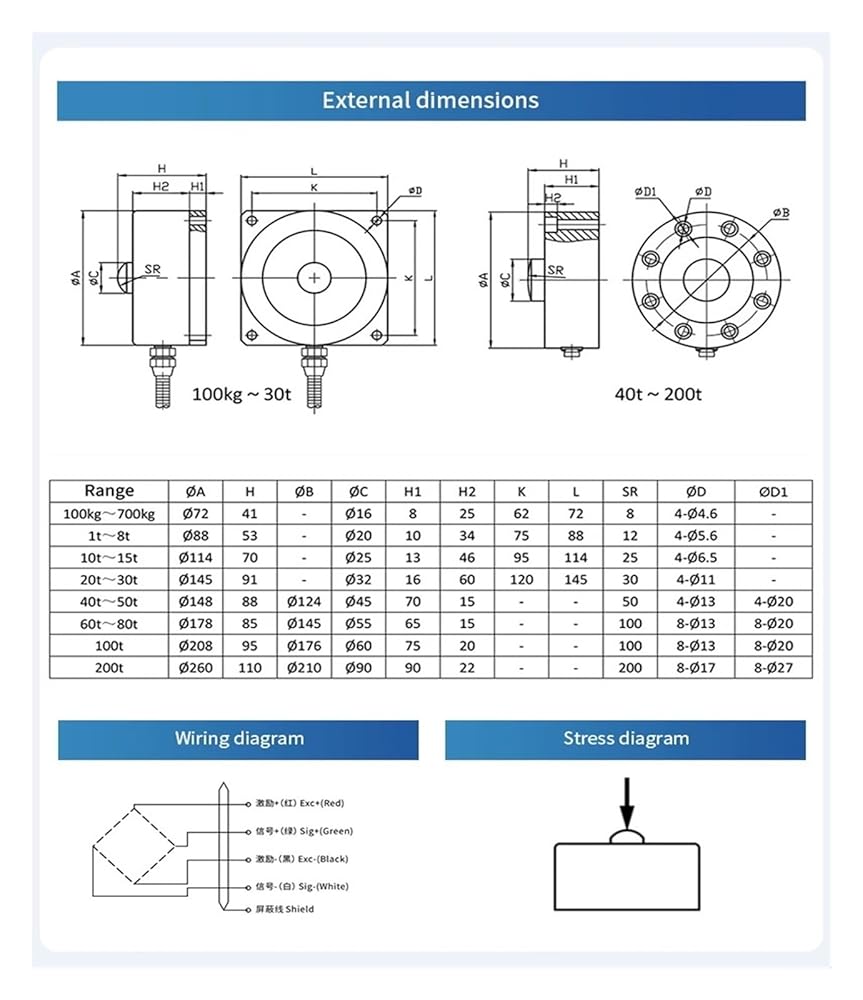 Spokes Load Cell Sensor HX711 AD Module Weight Sensor Electronic Scale Compression Force Weight Pressure200KG 5T(Range 0-200KG)