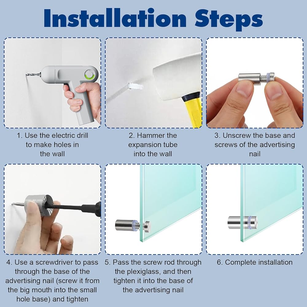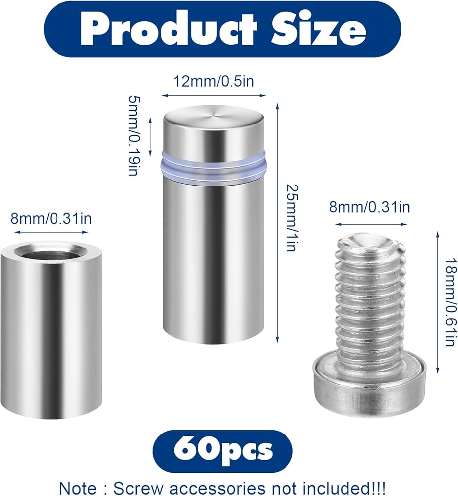 【Wide Application】- The 60 pcs stainless steel standoffs screw set is suitable for most types of signs and boards. The wall bracket sign bracket screw is a good tool for mounting acrylic boards, glass, and dry erase boards on the wall. It is also very suitable for fixing glass boards to wooden bases.