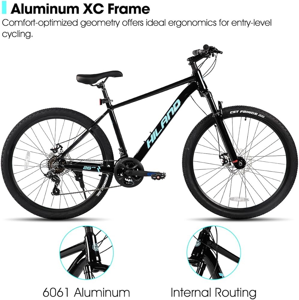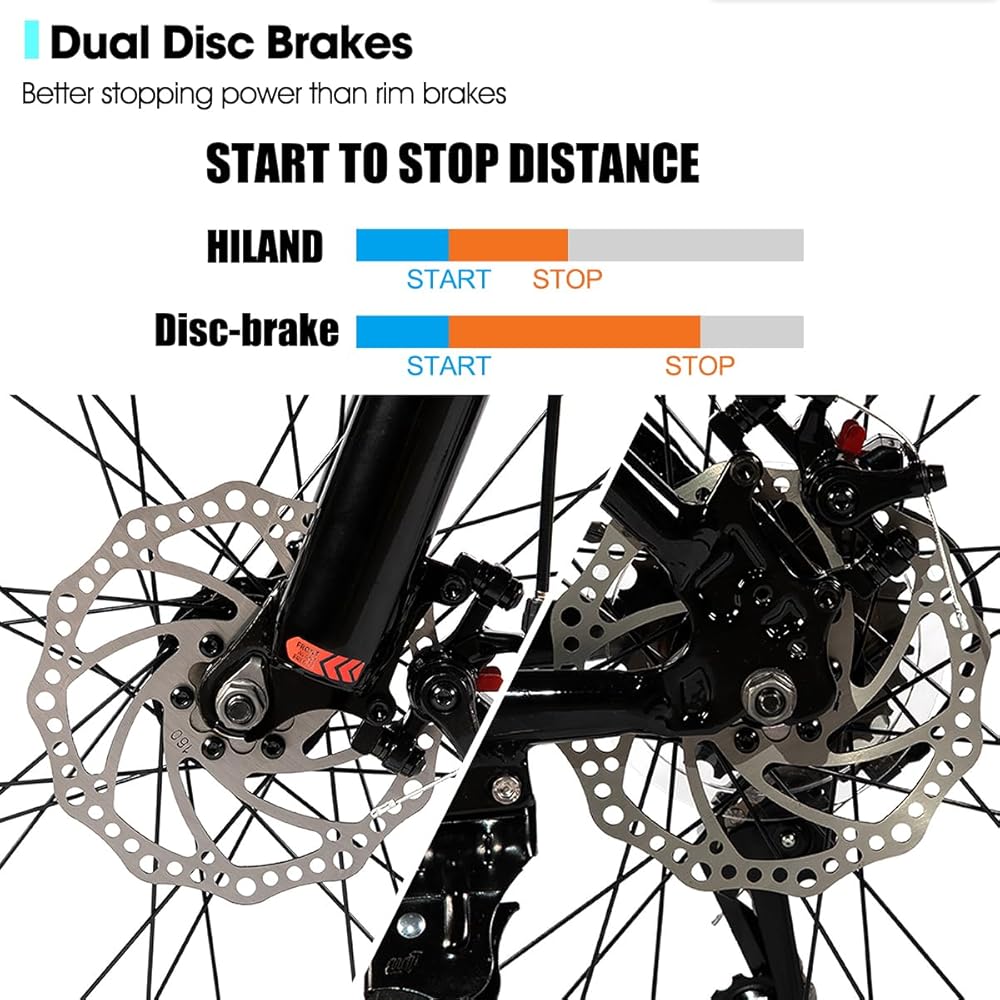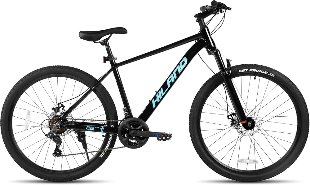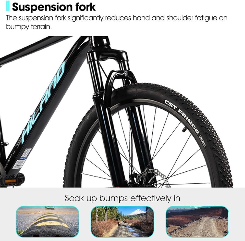 HILAND 26 Inch 27.5 Inch Mens Womens Mountain Bike, 21 Speed Mountain Bicycle with Dual Disc Brake, Front Suspension Fork, High Carbon Steel Frame Urban Commuter Bike for Adults