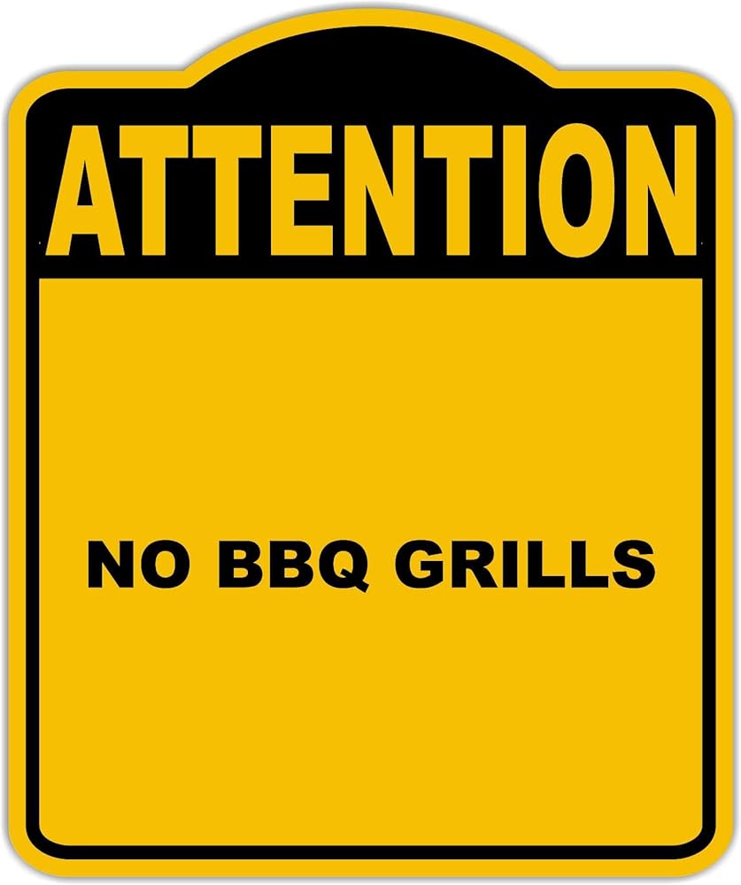 NO BBQ GRILLS Attention Yellow Black Aluminum Composite Sign 8.5 x 10 inches