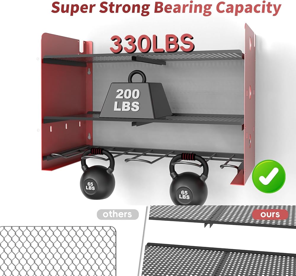 【High load-bearing capacity】 Our wall tool organizer mount is made of high-density steel metal, Strong load-bearing capacity for greater durability, With three levels of placement space, Enough to organize your instruments and tools,Dimensions: L: 32”, W: 8.7”, H: 16.5”.