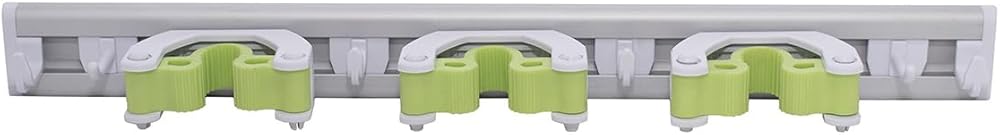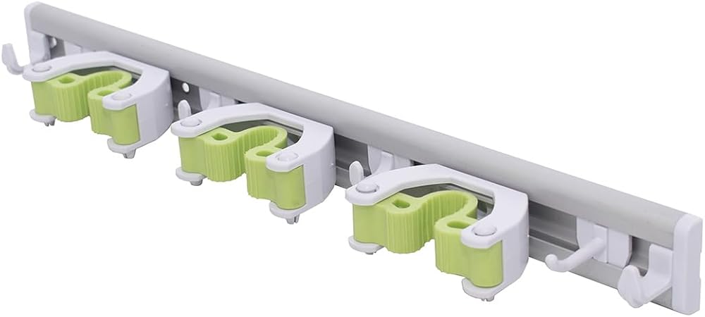 ONE-HANDED USE - The rubber grip slots on this broom holder secure cleaning tools in place with a simple push of the hand. They offer a quick release for easy grab-and-go cleaning, great for when you need to mop up those last-minute spills.