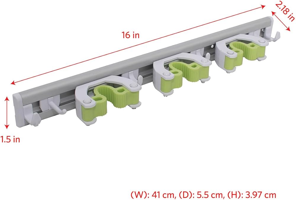 VERSATILE ORGANIZER - Sturdy metal wall mount supports up to 19.8lbs with rubber grips and plastic hooks. Not just for mops and brooms, you can use this wall mounted organizer to securely hold dusting wands, dustpans, cleaning towels, gloves, and even long-handled garden tools.