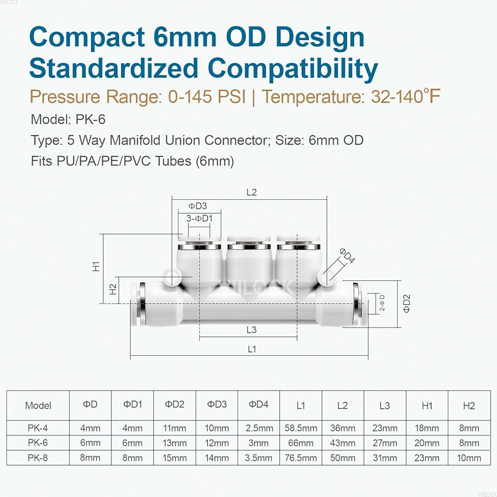 Type: 5 Way Manifold Union Connector; Size: 6mm OD
