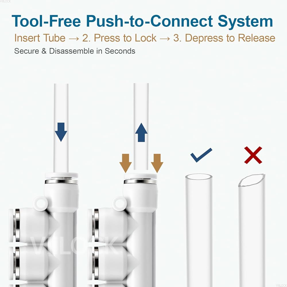 Easy to use: The design of push-to-connect fittings provide simple and quick installation. Depress the end cap and pull out the tube, easy to disassemble.