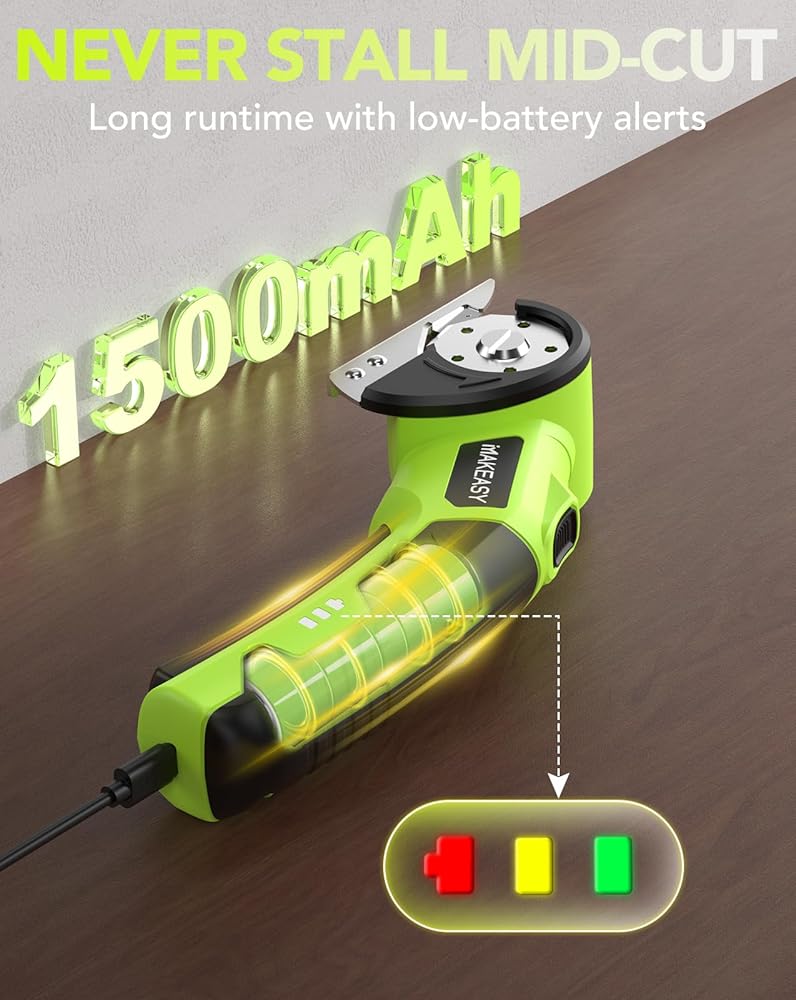 [Cord-Free Convenience] No cords, no limits. With a 1500mAh lithium battery and fast USB-C charging, these electric scissors for cardboard offer up to 45 minutes of continuous use. Tackle tasks anytime, anywhere—whether it's crafting at home or unboxing in a warehouse