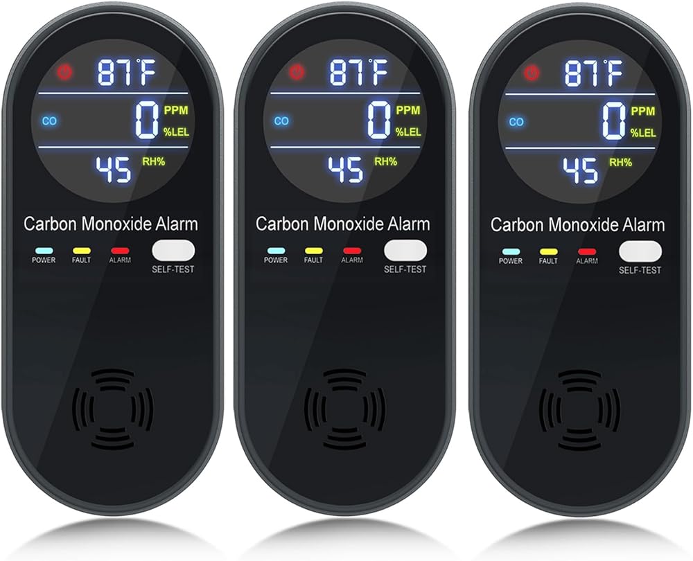 3 in 1 Carbon Monoxide Detectors- This CO Detector equipped with High-precision Electrochemical Sensor, it can simultaneously monitor Carbon Monoxide(0 to 999PPM), Temperature(1-176 ℉) and Humidity(0%-95%RH), Real-time monitoring, allows you to know the air quality of the environment.