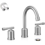 Safety & Solid Material: Phiestina bathroom faucets 3 hole heavy duty are certified to NSF 61 Lead-free Standards and 304 stainless steel, provide safe drinking water for your daily life. Safe and solid bathroom faucets improve your life quality.
