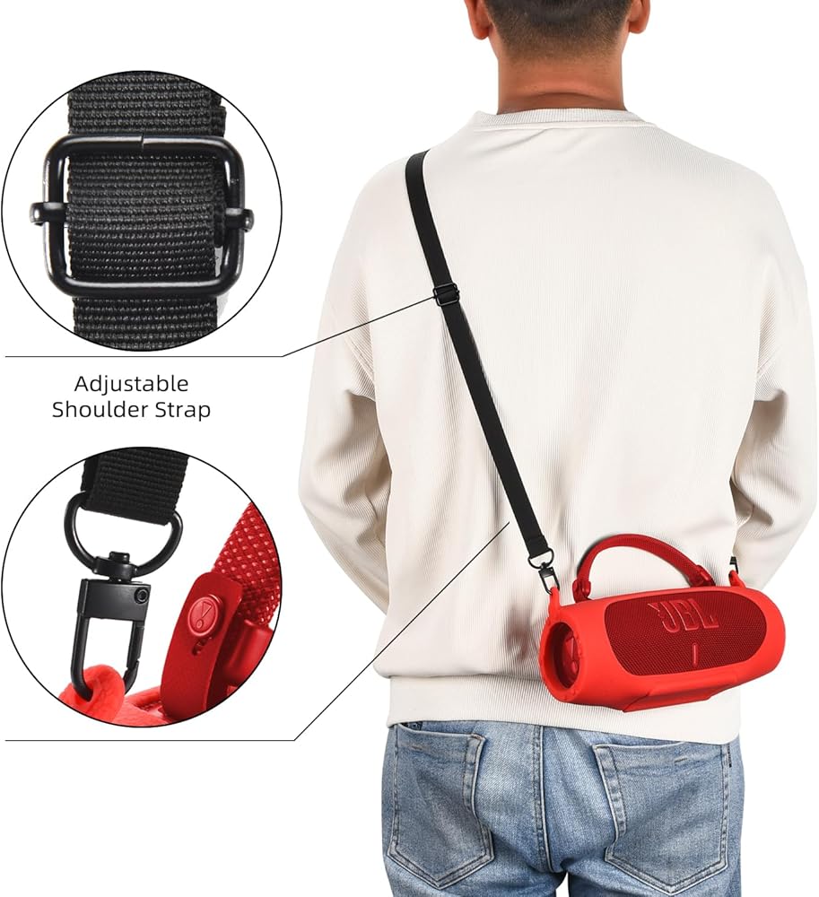 compatible with JBL Charge 6 speaker with this rugged silicone case, designed for outdoor adventures. The durable silicone material safeguards your speaker from drops, crashes, and impacts while hiking, mountaineering, or traveling. With a snug fit and reinforced corners, this case offers superior shock resistance and protection against scratches and scuffs. Easily access all ports and controls through precise cutouts. Lightweight and portable, this case is the perfect companion for your Charge 6 Portable bluetooth speaker
