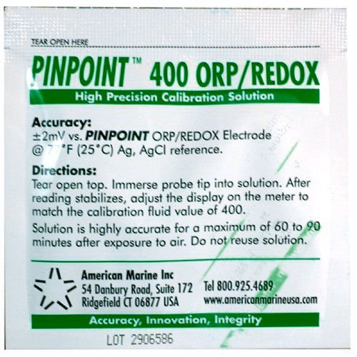 Another American Marine first. ORP/REDOX calibration fluid. With a precise measurement of 400mV this calibration fluid is included with every PINPOINT ORP Monitor and PINPOINT ORP Controller. Occasional retesting with this fluid will keep your readings dead-on accurate. Also very useful to determine if an ORP/REDOX probe is ready for replacement. Bulk boxes are available, please call for details.