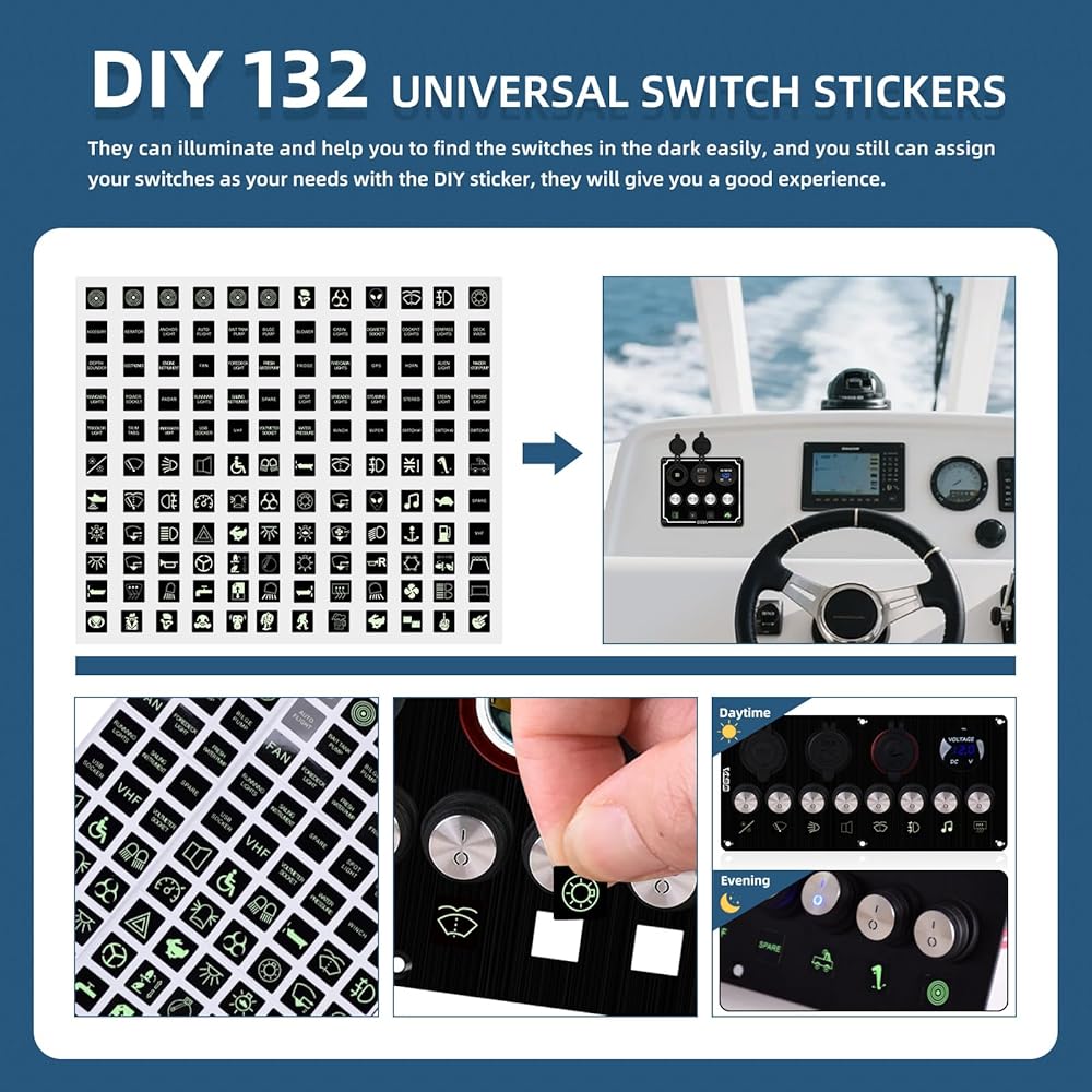 4. Professional certification, quality assurance The toggle switch panel has passed CE FCC, ROHS certification, and meets international safety standards, with quality assurance. Aluminum switch and panel design, not only beautiful and durable, but also effectively dissipate, strong and durable to extend the service life. Provide a variety of function identification stickers, you can always find the function you need to identify the switch.