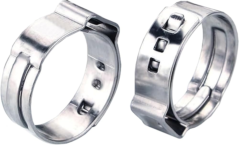 Easy to Install: Simply slide the durable ear clamp onto the tube, push the pipe onto the fitting, and use a crimp clamp tool to squeeze it. This process ensures a firm, leak-proof, and reliable crimp joint connection with MISPIRE single ear hose clamps.