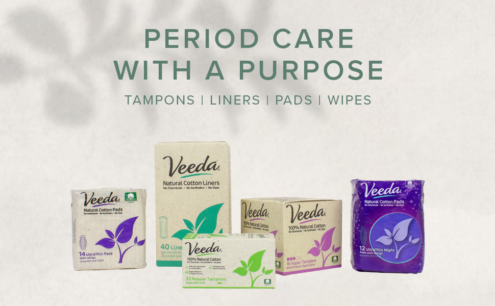 FREE FROM HARMFUL CHEMICALS - Veeda tampons are pesticide, dioxin, chemical, chlorine, dye, fragrance and synthetic FREE.