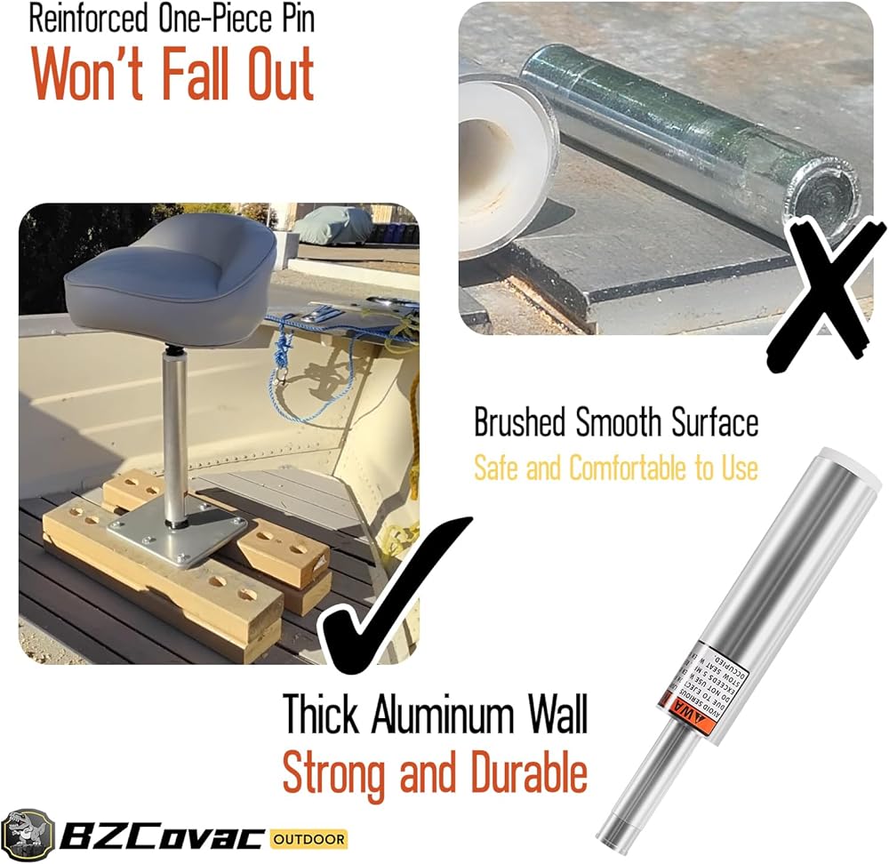 Extra Height and Fishing Comfort - The 3/4" pin is built strong to securely support heavier users, featuring a durable steel pin and a brushed aluminum upper for corrosion resistance. Say goodbye to sitting on the deck or a bucket—this pedestal post gives you a proper seat height and a little extra leg room, especially appreciated by taller anglers when fishing on the water