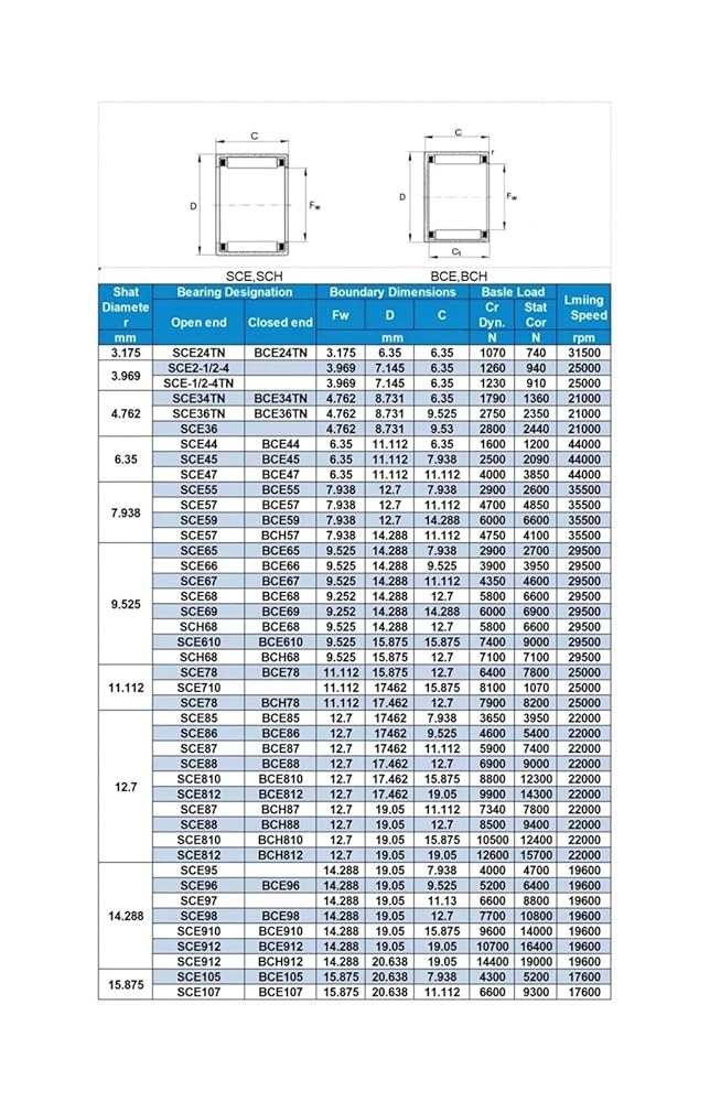 5PCS Inch Needle Roller Bearing Inner Diameter 4.762 6.35 7.938 9.525MM SCE36 44 45 55 57 59 65 66 67 68 69 610
