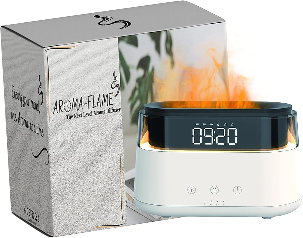 A- Unmatched Functionality: Experience an unparalleled sensory journey with the captivating fire-animated aroma diffusion, customizable for up to six hours. Coupled with a chic modern clock with dual alarm functions, you'll always be on top of your day. Our adjustable three-level LED night light lets you set the ideal mood for every occasion. Enjoy the freedom to independently operate the functions for a personalized experience - choose a heavy aroma mist with a gentle LED glow, or a vivid orange aroma light with the clock display off. This diffuser is the epitome of personalized luxury.