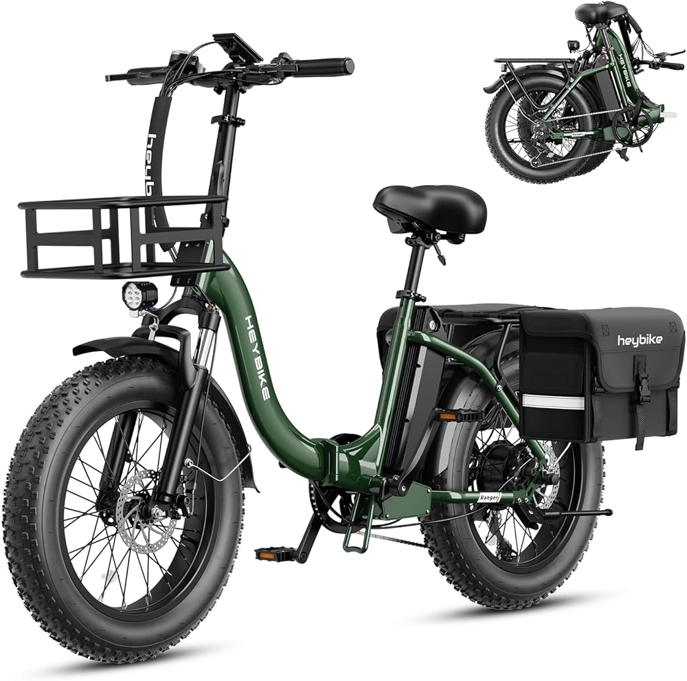 Heybike Ranger 2.0 Electric Bike for Adults, Peak 1400W Upgraded Motor Ebike, 28MPH [20" Fat Tire All-Terrain] 600Wh Removable Battery Folding Step-Thru Moped E Bike with Front Suspension