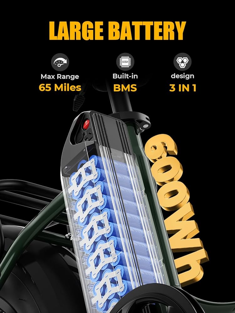[Safe and Efficient]- The e-bike's integrated front and rear lights enhance nighttime visibility, while the fast-charging design ensures quick and easy charging, improving convenience in daily use