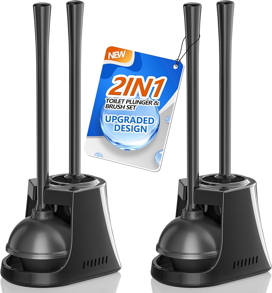 Compact Storage: 2 in 1 Toilet Brush and Plunger Set includes an efficient toilet brush, a durable toilet plunger and venting holder, which provides convenient storage and reduces wasting space in your bathroom. This toilet plunger and brush set is not only a convenient and practical tool, but also can be a stylish decor for your bathroom.