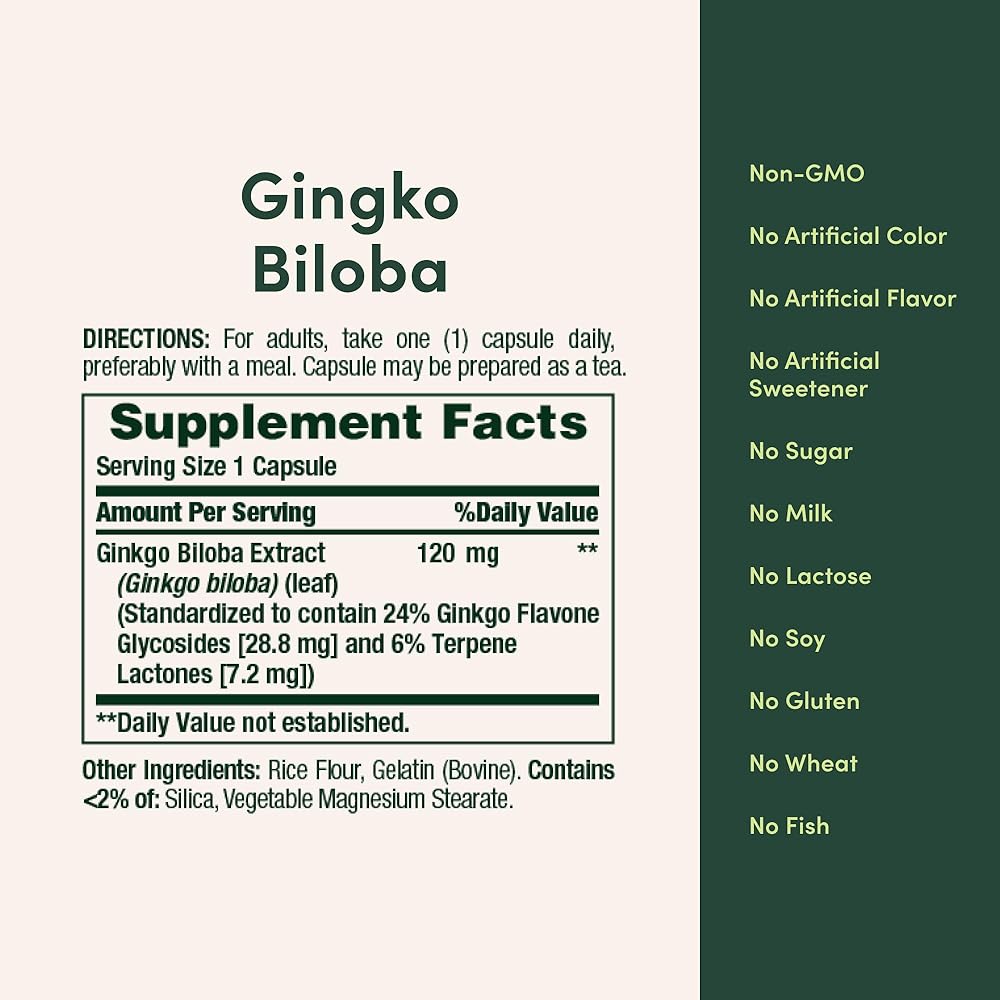 Nature's Bounty Ginkgo Biloba Standardized Extract 120 mg supports healthy brain function and mental alertness to continue to help you feel your best. (1) Ginkgo biloba supplements are used for occasional mild memory problems associated with aging. (1) Used in China in the 15th century, Ginkgo also helps to maintain healthy circulation. (1) Looking for Ginkgo supplements to support a healthy brain? (1) Simply take one capsule per day. Each pack contains 100 capsules.