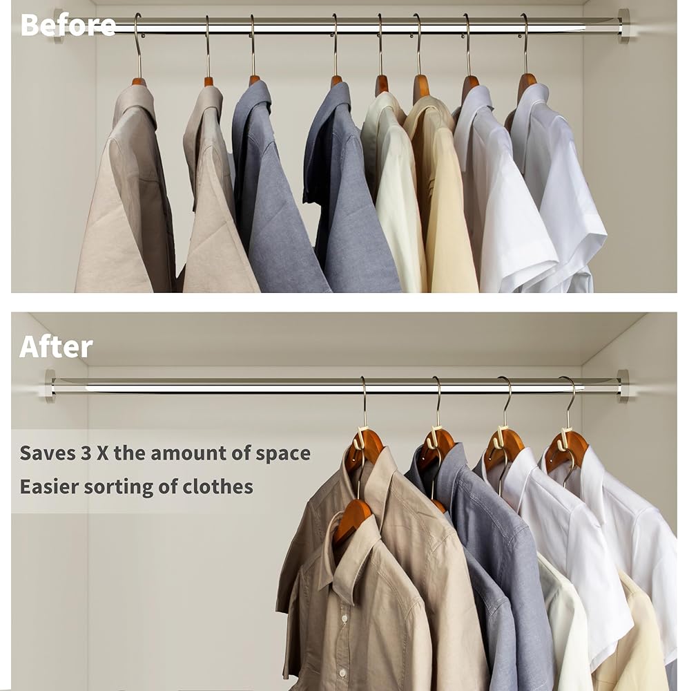 【Space Saving Closet Hanger Hooks】: These hanger connector hooks for your hangers allow you to place your hangers in a cascading vertical arrangement, which can Saving your closet storage space and keep your clothes neatly arranged.