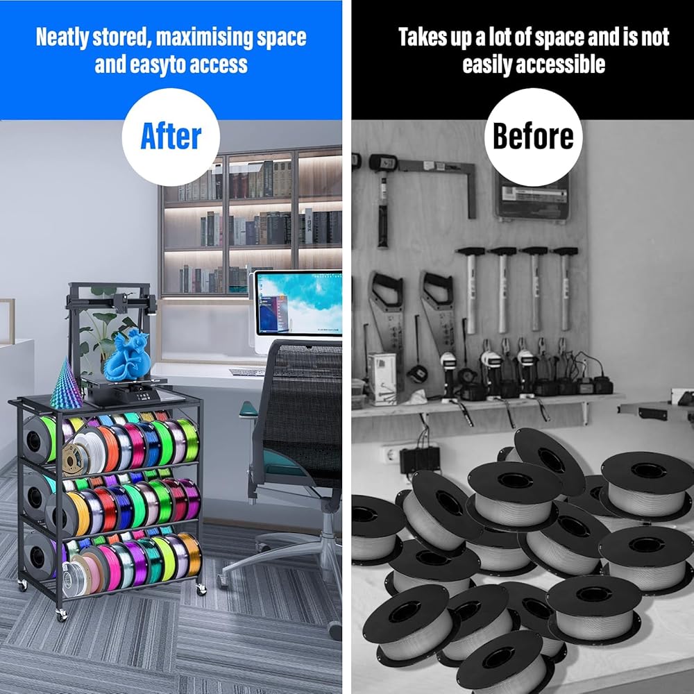 【Easy to Assemble】Our 3d printer rack filament storage is sturdy stand, which only take about 15 minutes to put together and it's exceptionally simple. The 3d printer rack will keep your workspace organized and efficient, which is a fantastic addition to any 3D printing workspace.