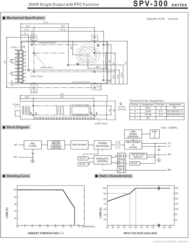 SPV-300-12/SPV-300-24/SPV-300-48 300W Single Output Power Supply