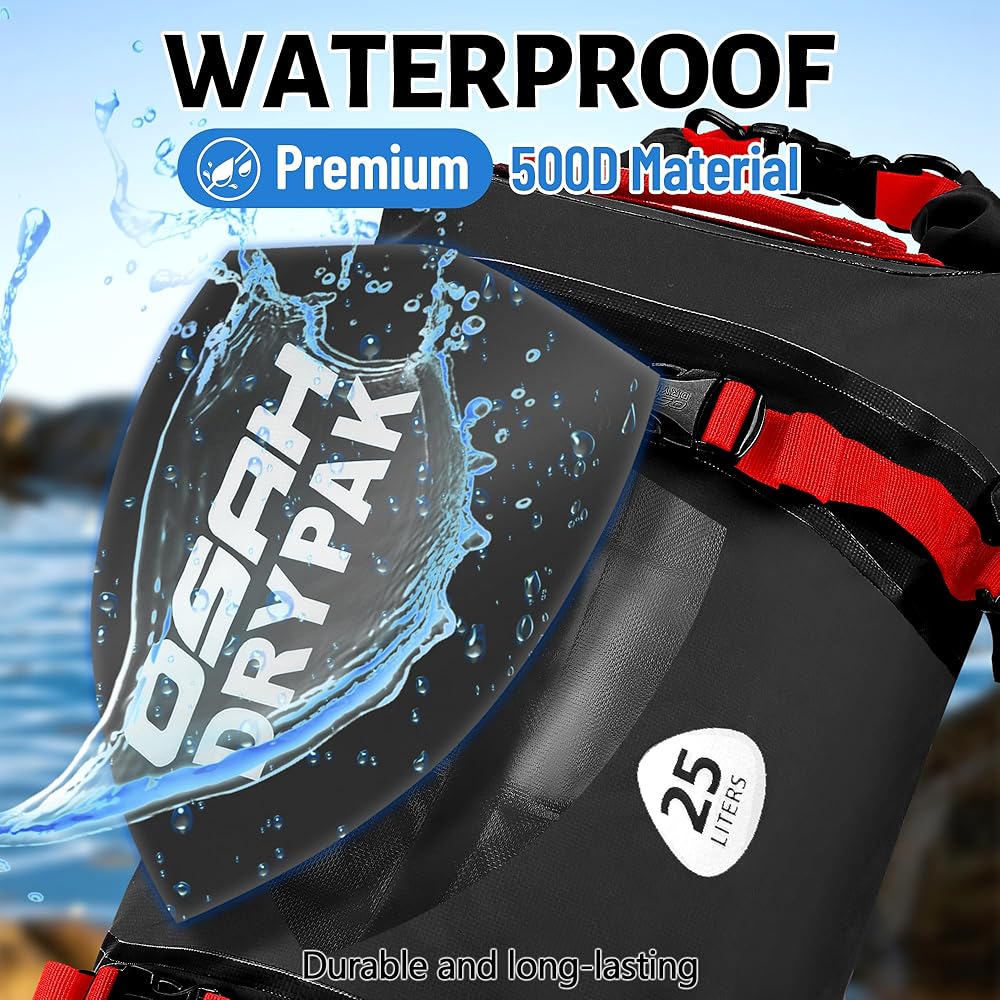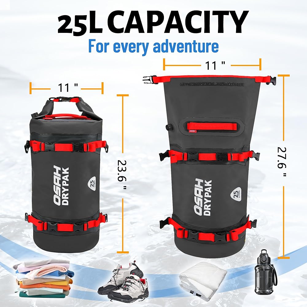 OSAH DRYPAK 25L Waterproof Dry Bag - Motorcycle Luggage Tail Bag with Straps for Back Seat, Roll Top Lightweight Waterproof Backpack Sack for Travel, Swimming, Boating, Kayaking, Camping and Beach