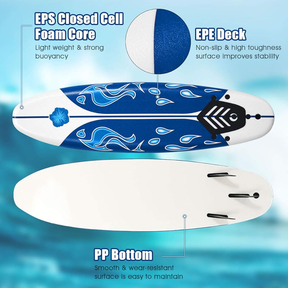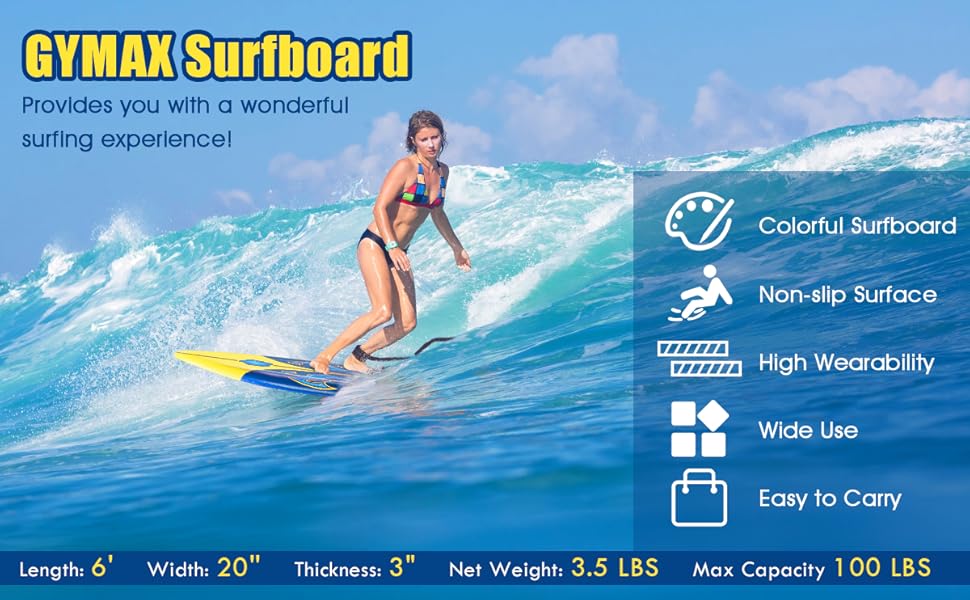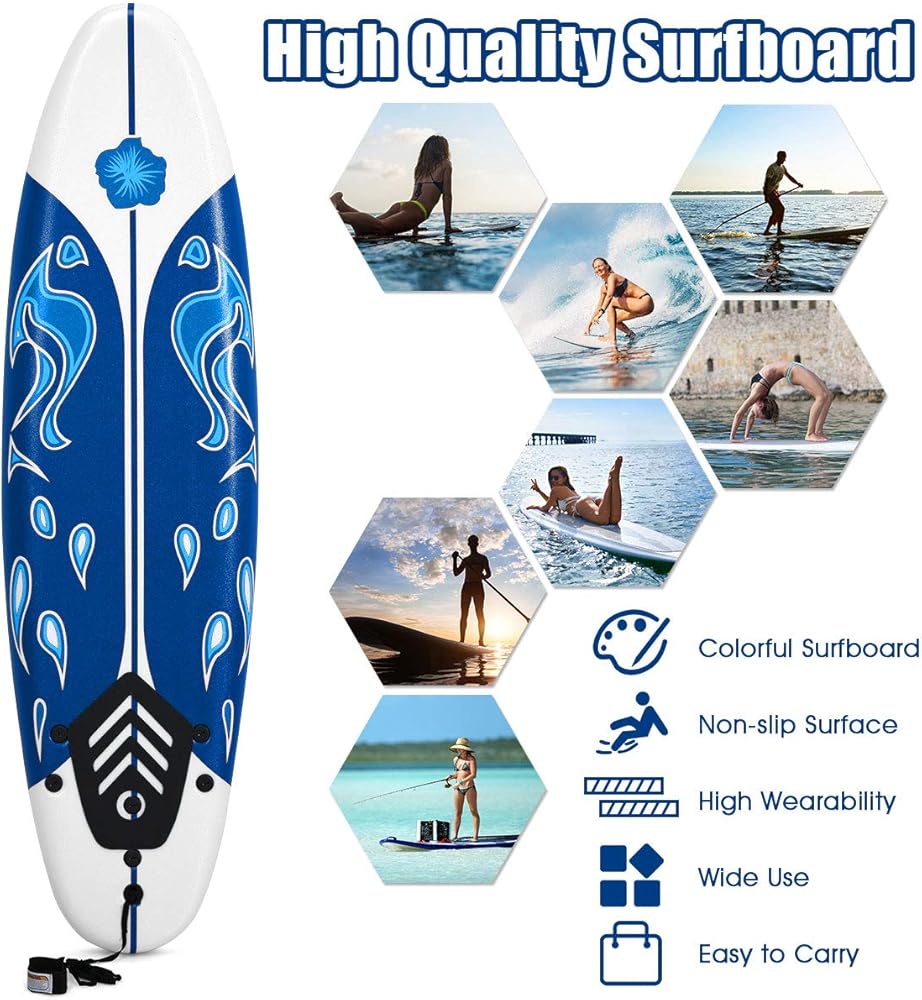 【Durable Usage】The surfboard is consist of high quality EPS core and slick HDPE bottom, heavy duty and durable. Furthermore, XPE deck is tear resistant, ensuring long-lasting usage.