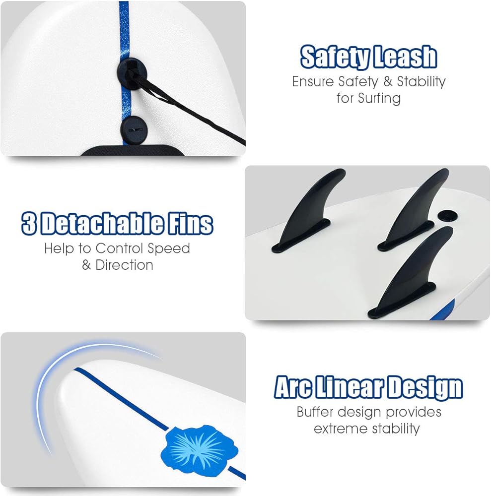 【Removable Fins】The surfboard is equipped with 3 removable fins, which helps you to control the direction of surfing easier. Meanwhile, arc linear design makes it even more suitable for beginners.