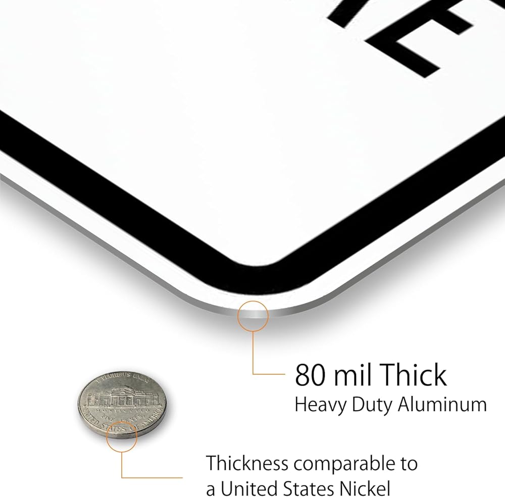 DURABLE ALUMINUM: Custom signs are made using 80 mil thick non-reflective aluminum and do not bend easily. They have been proven to outlast the toughest of storms. Signs last over 10 years outside.