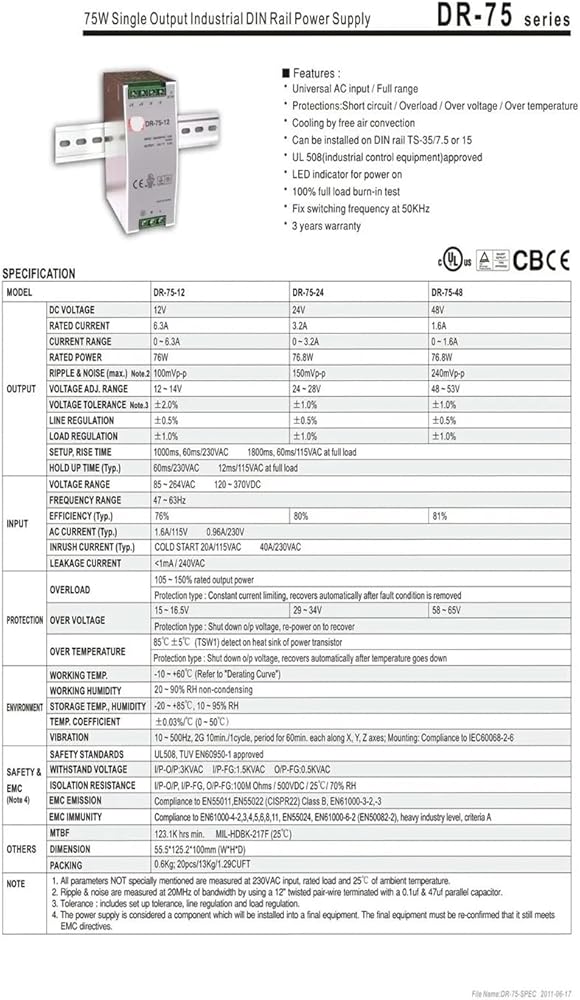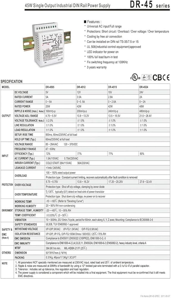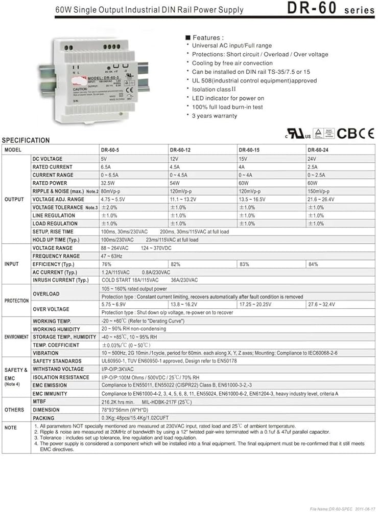 DR-15-5 DR-15-15 DR-30-5 DR-30-15 DR4505 DR4512 DR-60-5 DR-60-12 DR-60-15 DR-75-12 DR-75-24 DR-100-12 DR-100-24 switching power supply
