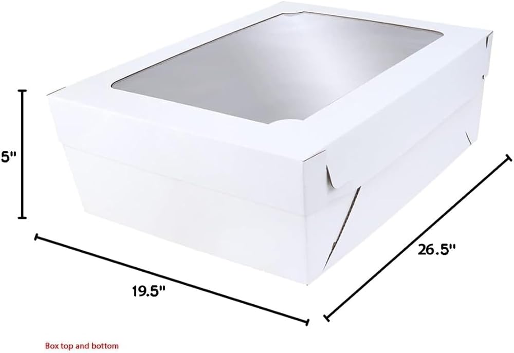 Cake Box with Window: Clear transparent color-free plastic see-through window displays the food you've packed in the box, 100-percent food safe; no bleach or chemicals