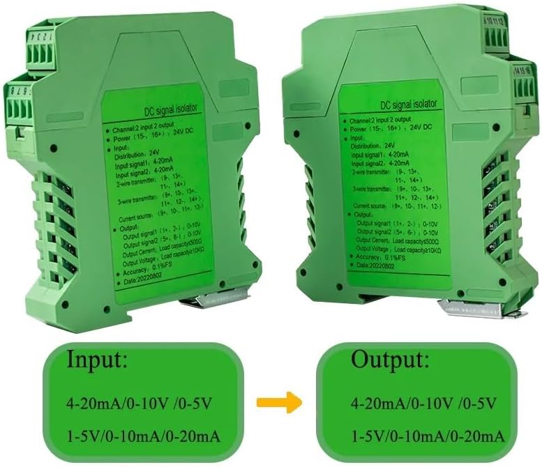 DC24V 0-10V Analog DC Signal Isolation 4-20mA 0-5V 0-20mA 1-5V Galvanic Signal Isolator DC24V AC220V Signal Splitter 1 in 2 Out(2 in 2 Out,Input 0-5V_-_1-5V)