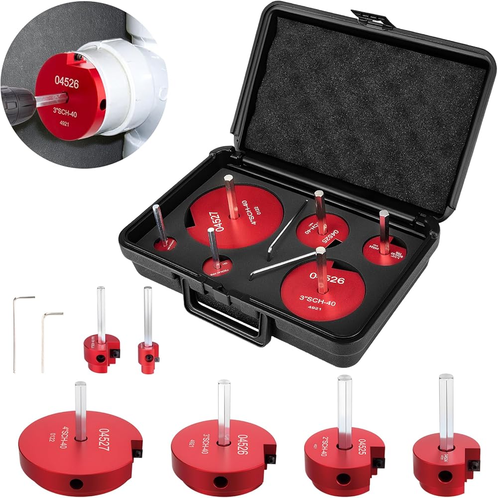 Nine Sizes Included: The 9-Piece pvc reamer kit contains night sizes of reamers, 1/2", 3/4", 1", 1-1/4", 1-1/2", 2", 2-1/2", 3" and 4", and two Allen wrenches for a perfect fit on a wide range of pipe diameters