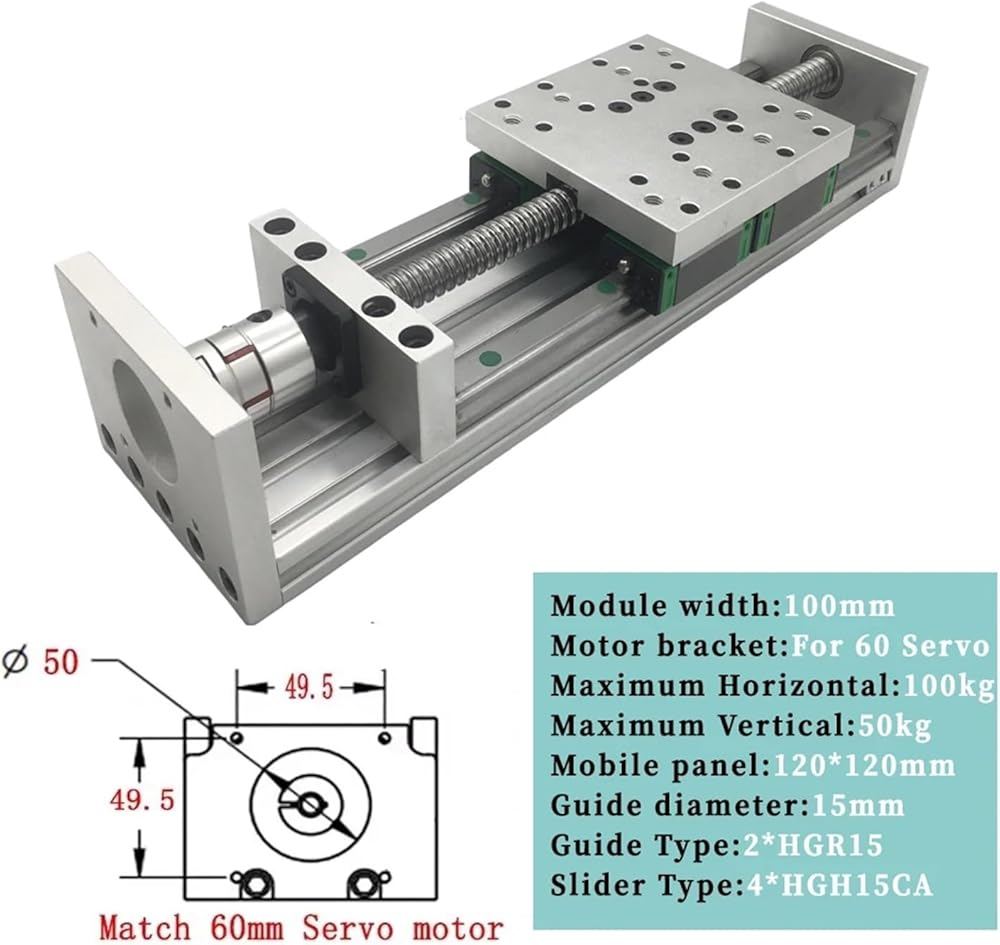 100mm Width Double Linear Guide Sliding Table SFU1605/1610 BallScrew 50-1200mm Linear Actuator XYZAxis 4PCS HGR15(60 Servo Bracket,SFU1605-1200)