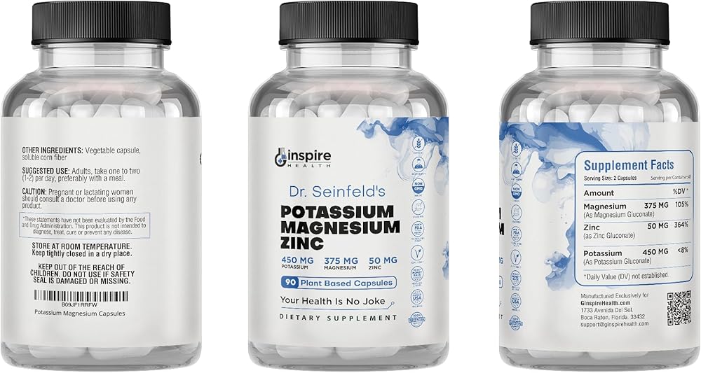 POTENT POTASSIUM MAGNESIUM ASPARTATE – Ginspire's Potassium 450mg, Magnesium 375mg Zinc 50mg is a triple strength formula delivered in a 45 day supply of easy-to-swallow pills. Recommended daily dose is two pills per adult, preferably with food. Formula is specifically designed to help relieve twitches, tremors, muscle cramps, extreme fatigue and headaches that may be attributed to potassium & magnesium deficiency combined with immune support Vegan & non-GMO.