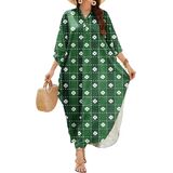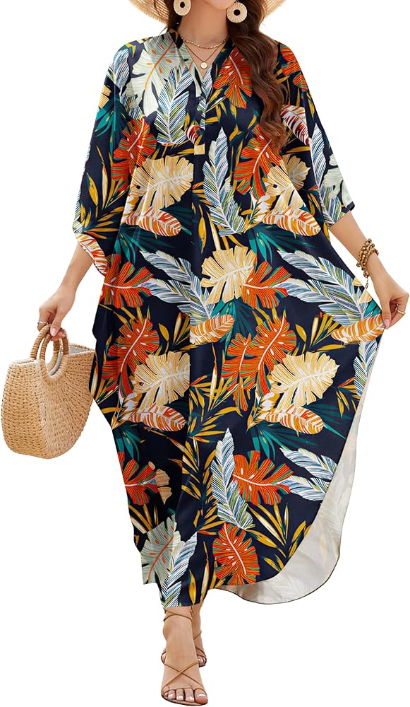 MAKABO Women's Print Kaftan has deep V-neck and skirt side split design to make you look sexy and charming, featuring Maxi length and overall design to make you look taller and slimmer; the gorgeous colorful design makes this cover-up more unique, and the loose fit makes it more comfortable for women to wear. Each de print is unique while keeping the classic colors; Newly upgraded dress fabric, it makes your figure look slimmer and more elegant, opaque and non-transparent. The caftan dresses suit for the beach, resorts, party,swimming pool,poolside tanning salon,and hanging out on the street,cruising,vacation,spring and summer daily wear, ect. It makes a nice pretty summer dress for casual wear around house/a dinner outfit/a lounge dress. Sexy & elegant swimsuit cover up best match for any summer dress and shorts,Perfect for match with sandals, or high heels, stylish bag, sun hat, you will got tons of looks and compliments. It can be worn day into night, as a swimsuit cover-up and long dress at the beach, as well as a glamorous evening dress or even as maternity maxi dress, as well as a glamorous fashion dress. The kaftan dresses can be over your tank tops or cut off shorts, even a tunic and leggings, further more the sundress,the printing kaftans is the fashionable way to dress it up in the summer days. Perfect for just out of the shower.