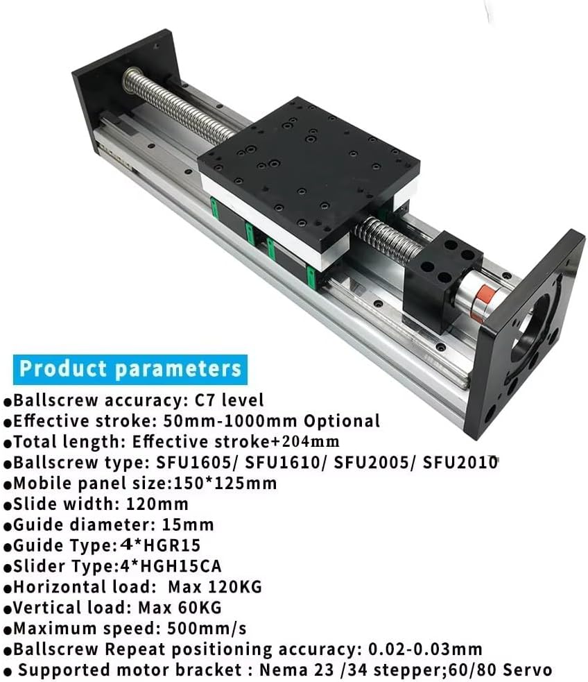 Double Linear Guide 120mm Width Sliding Table1605/1610/2005/2010 BallScrew XYZAxis Stage Linear Actuator 4PCS HGR15 Slider(SFU1605-800mm)