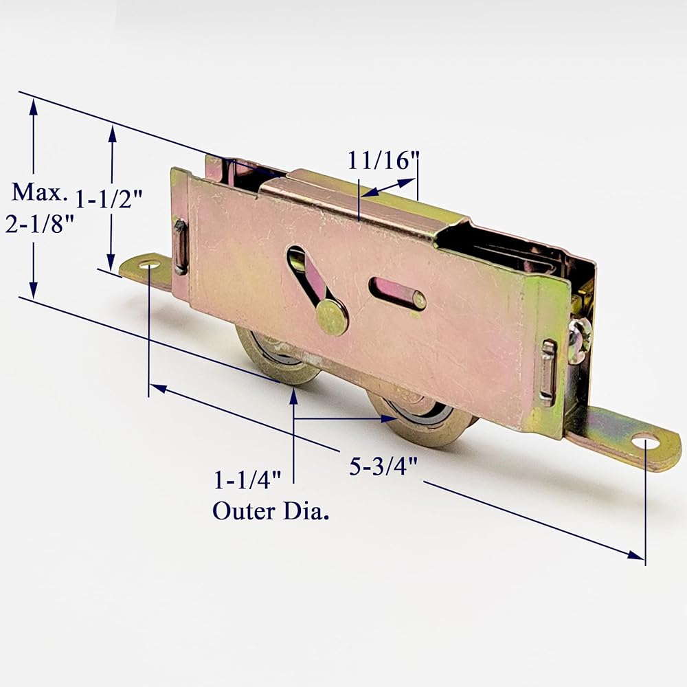 2 Pack Sliding Patio Door Tandem Roller Assembly Fits for Guardian, Croft, VinylMax Primarily Used on Vinyl Glass Doors, 5-3/4" Screw Hole Centers, 1-1/4" Steel Ball Bearing, End Adjustment