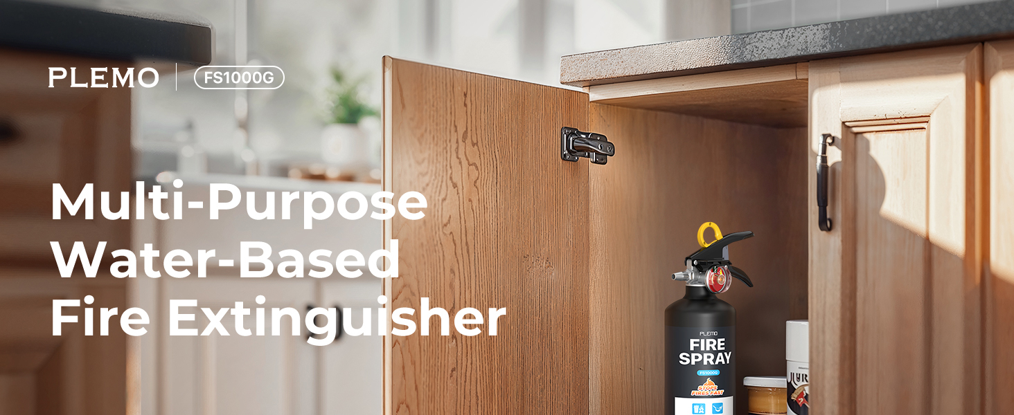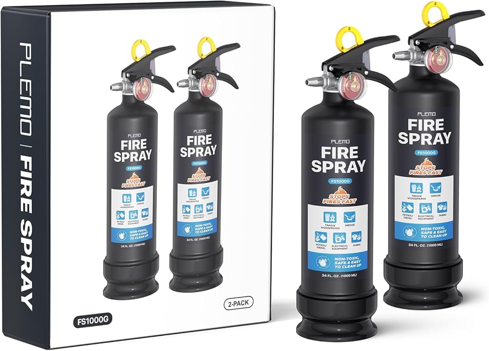 PLEMO Fire Extinguisher For Home Water-Based with Easy-Grip Quick Release Handle for the Kitchen, Office, Car, and Garage, 34 Fl. Oz, Model FS1000G, 2-Pack